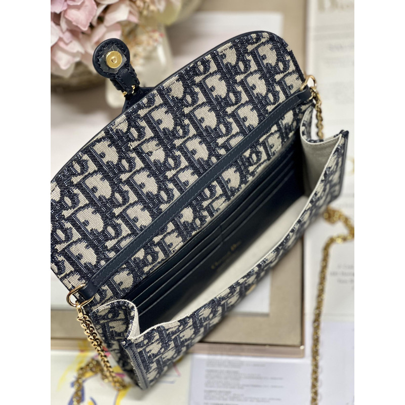 Crafted in Dior Oblique jacquard fabric and decorated with a decorative CD closure on the flap, it has practical compartments including a small detachable zipped pocket. The detachable chain can be combined with the collection's shoulder and micro straps, so it can be worn on the shoulder, cross-body or in the hand.
