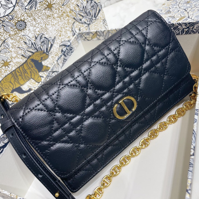 Crafted from supple calfskin with Cannage stitching, it features a 'CD' logo flap in antiqued gold-finish metal and a compartment for all your essentials. The detachable 'CD' chain makes it an ideal everyday companion as it can be carried by hand, over the shoulder or cross-body.