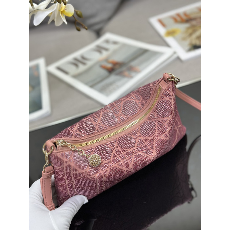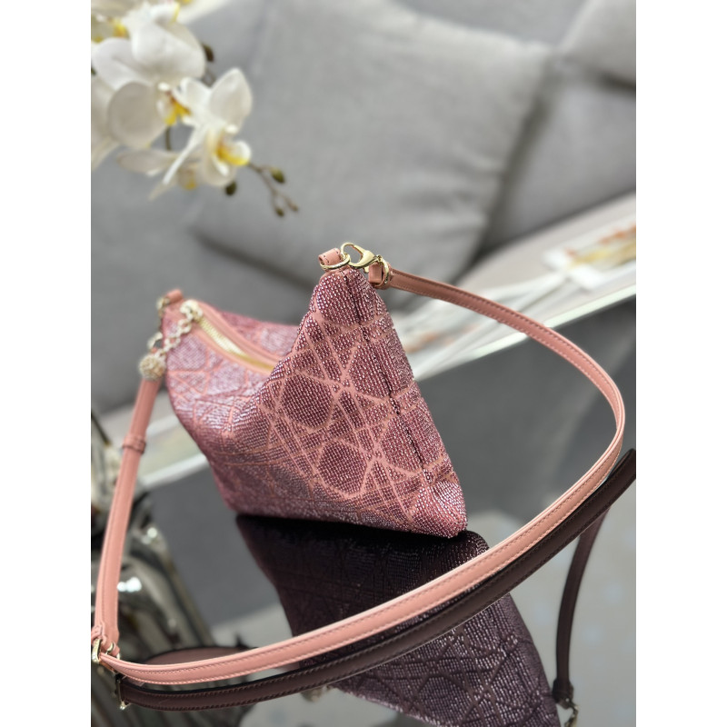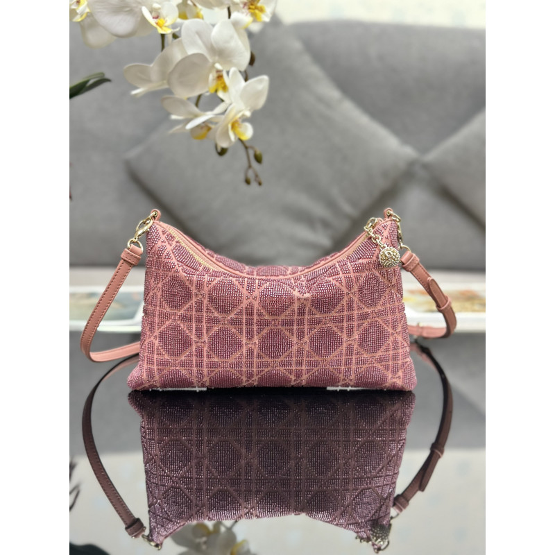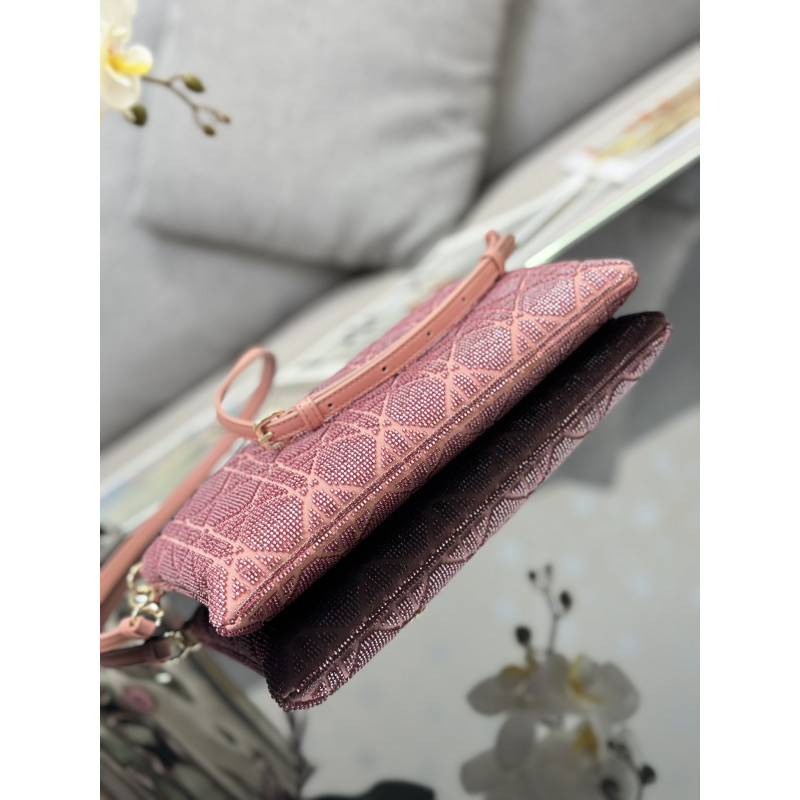 It features a classic cannage pattern. Hand-embroidered with 2mm glass beads. The adjustable and detachable leather spaghetti strap adds sophistication and adds elegance to evening looks.