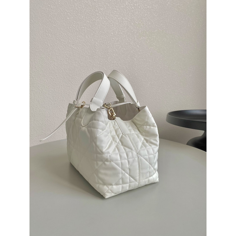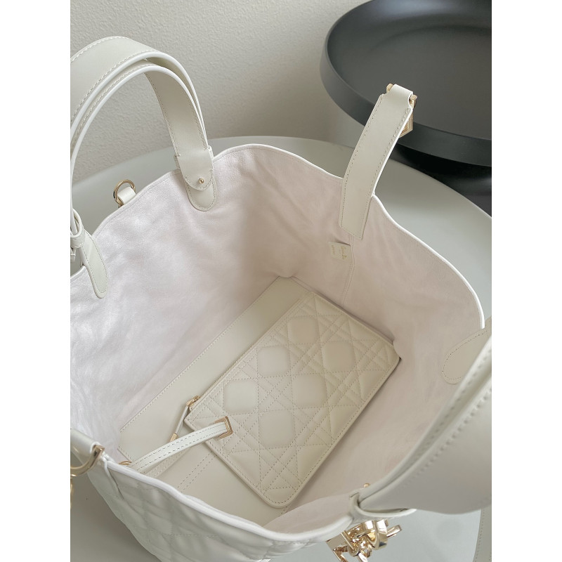 DetailOversized cannage pattern and the customary CD buckle, unlock the buckle to change from a square bag to a large tote bag,