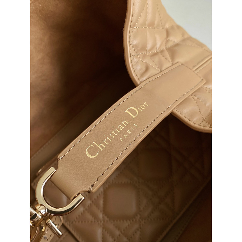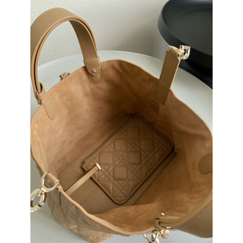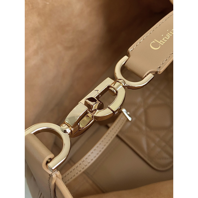Oversized cannage pattern and the customary CD buckle, unlock the buckle to change from a square bag to a large tote bag,