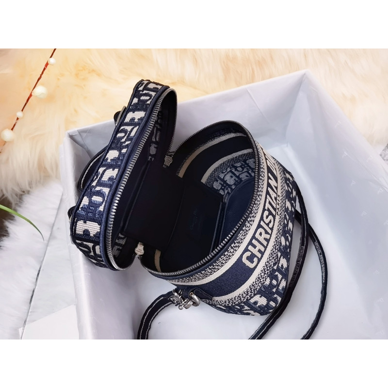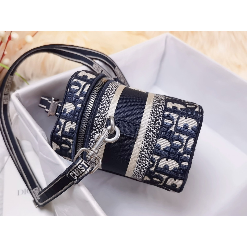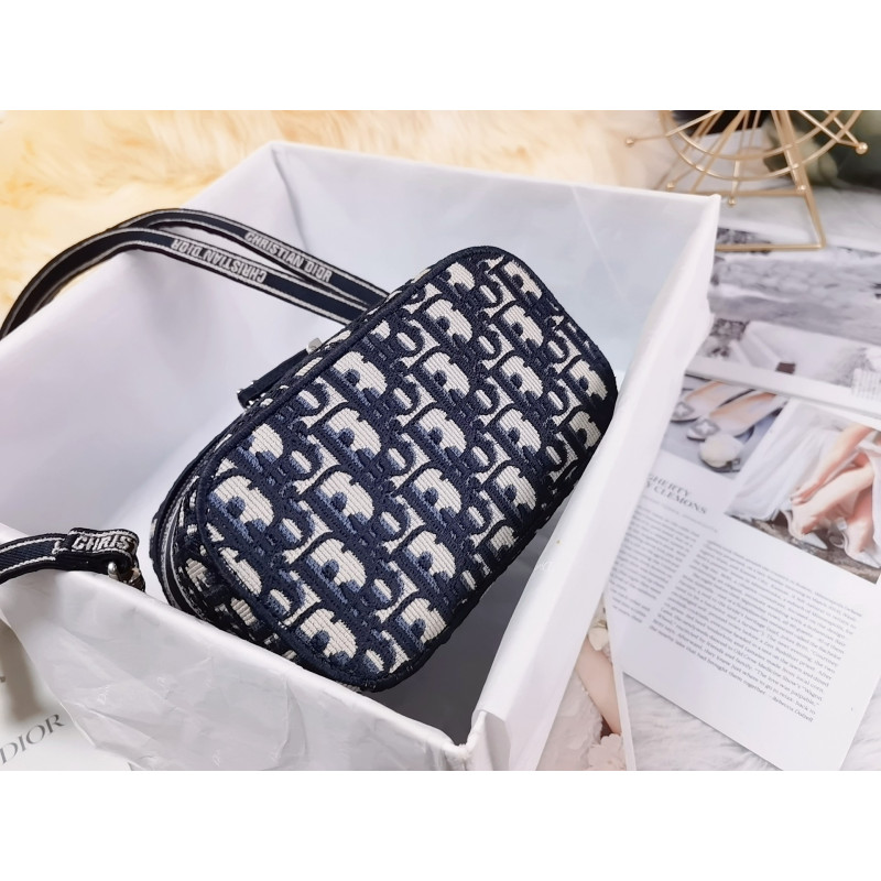 Crafted from Oblique jacquard fabric, it's embossed with the CD signature on the top and bottom. The interior is elegant and spacious with a two-way zip. The sturdy leather top handle and adjustable, detachable shoulder strap make this pouch the ideal everyday companion by hand, over the shoulder or across the body.