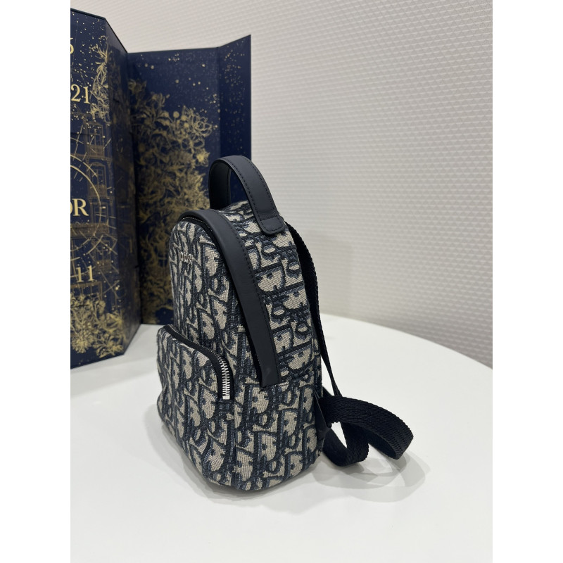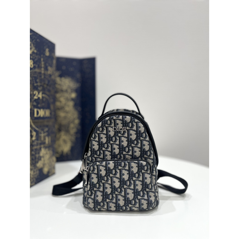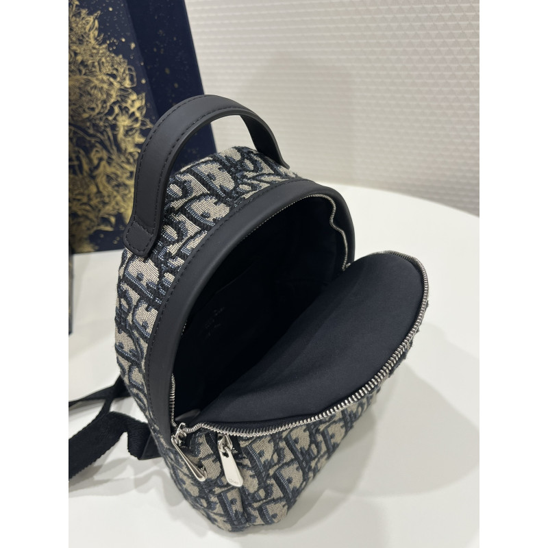 DetailThe Dior Oblique Jacquard Rider Backpack has a utilitarian silhouette, with a zipped main compartment and front pocket for all your small essentials, and a metal Dior signature on the front. Lightweight and durable materials, top handles, and adjustable shoulder straps complete this micro backpack that's perfect for kids.
