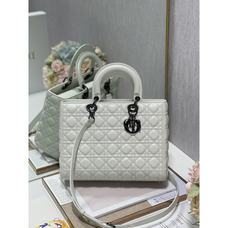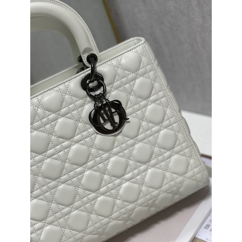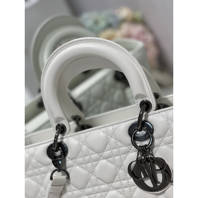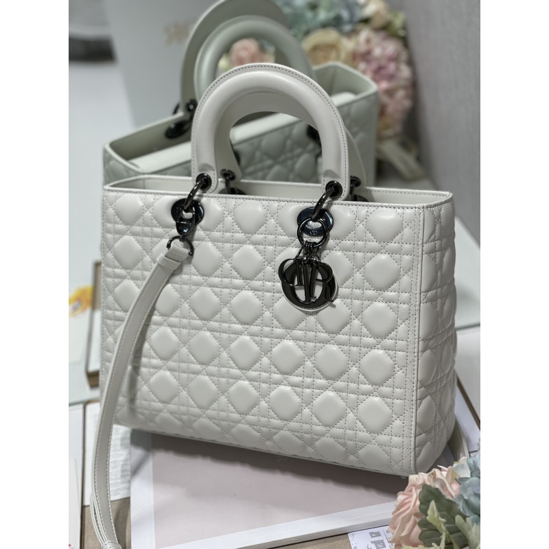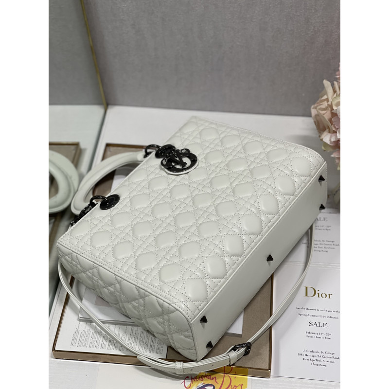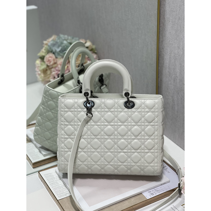 Crafted from black lambskin with Cannage stitching for an instantly recognizable quilted texture. Internal zipper pocket, large patch pocket, with detachable and adjustable thin shoulder strap, the bag can be matched with different embroidered shoulder straps, can be carried by hand, on the shoulder or crossbody, making it an ideal evening companion.