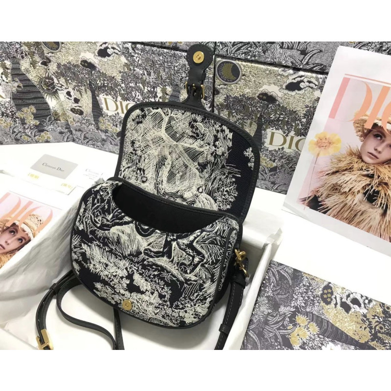 DetailEmbroidered Toile de Jouy motif and finished with antique gold-tone hardware. The detachable, adjustable shoulder strap with military buckle fits in the hand, over the shoulder or across the body.