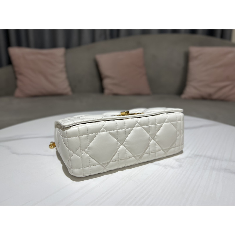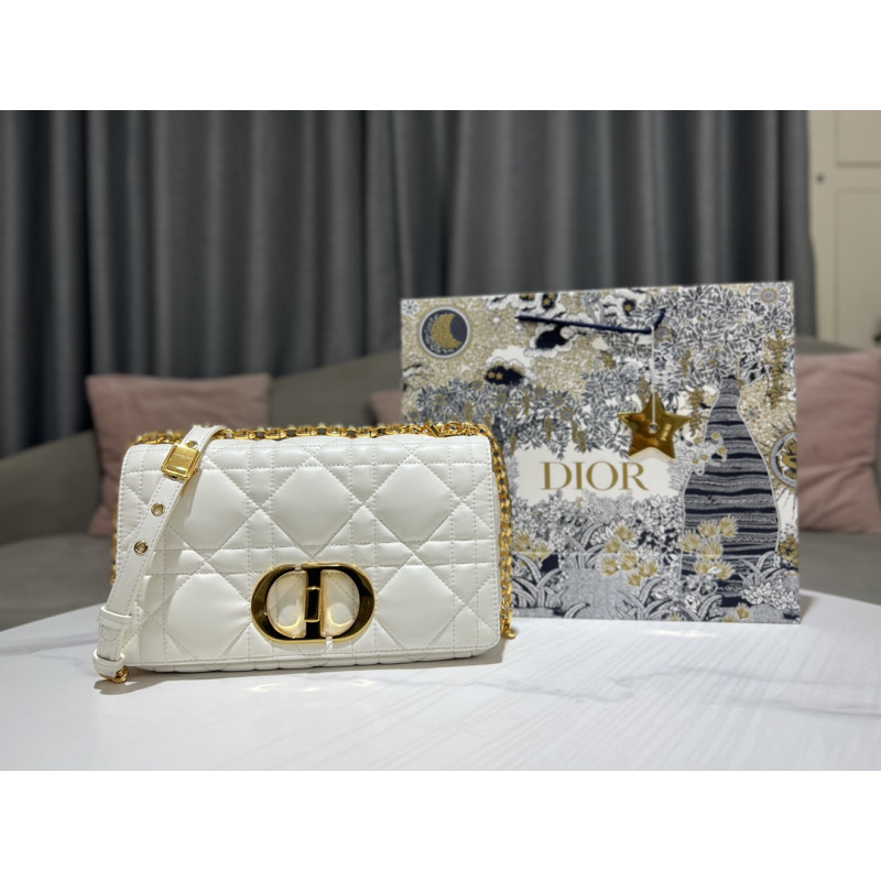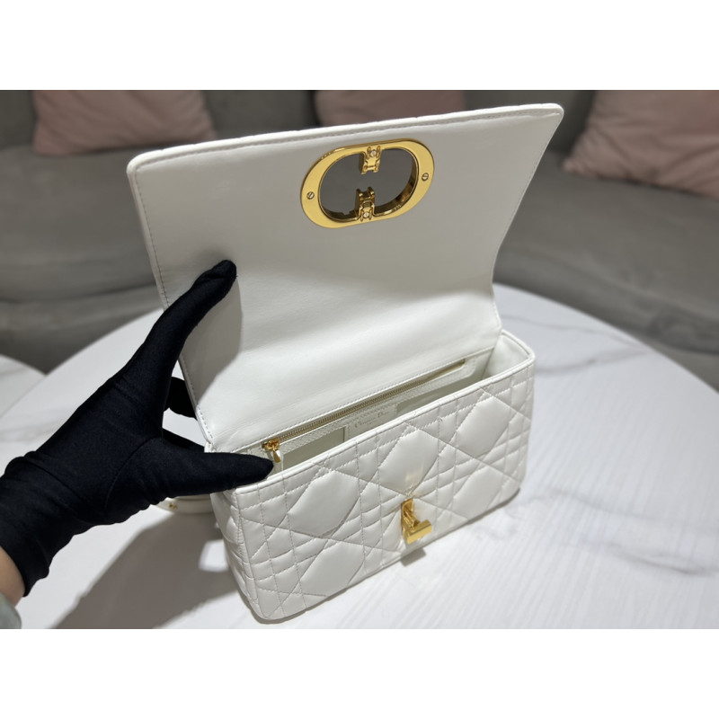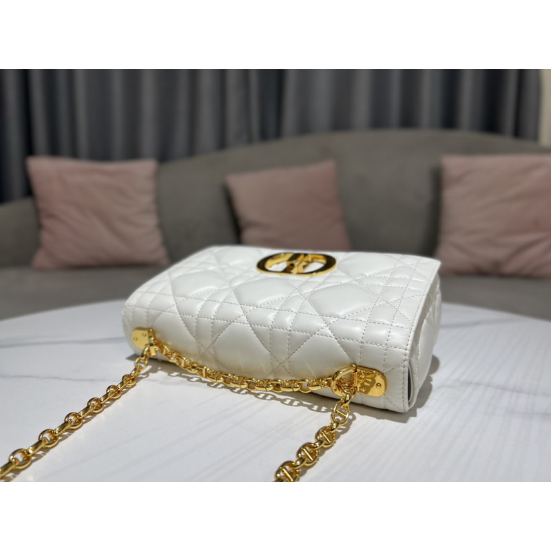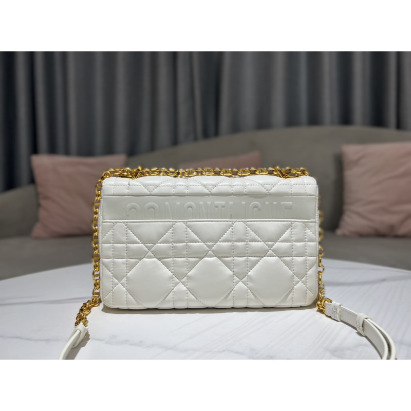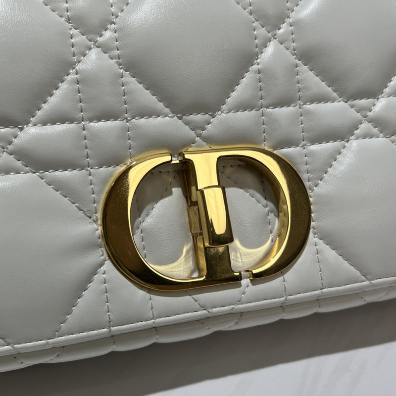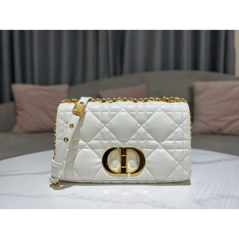 Made of calfskin with Cannage stitching. Fitted with flap, decorated with antique gold-plated metal 'CD' turnbuckle, adjustable and detachable 'CD' chain shoulder strap with 'CD' logo links, can be carried by hand or on the shoulder, can be matched with different embroidered shoulder straps.