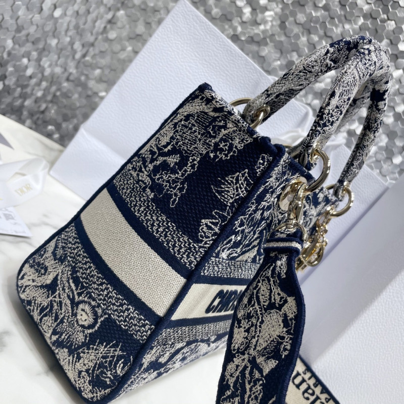 DetailThe 'CHRISTIAN DIOR PARIS' logo is embossed on the front, and it is equipped with a large double-sided detachable embroidered shoulder strap, which can be matched with different embroidered shoulder straps, and can be carried by hand or cross-body.