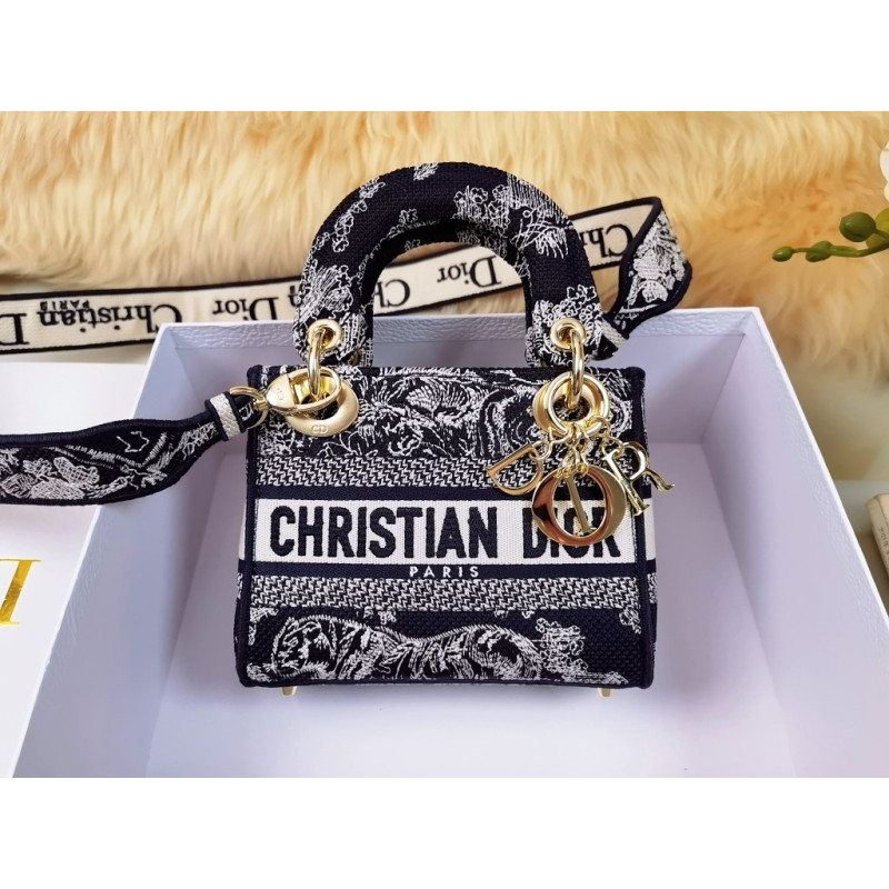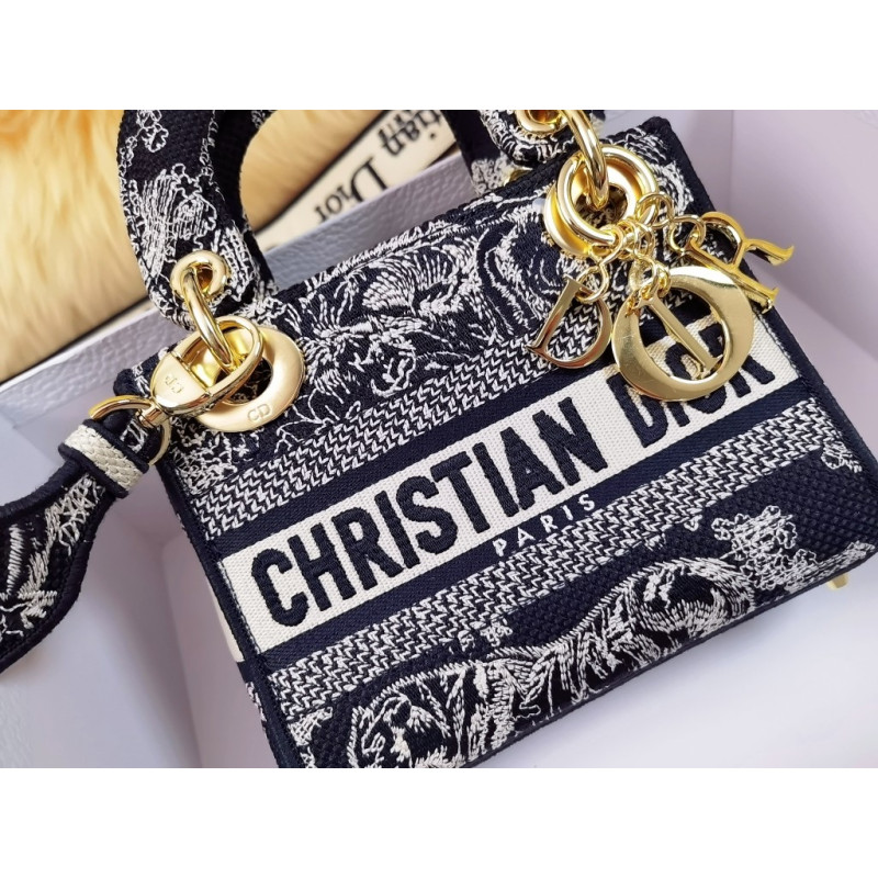The 'CHRISTIAN DIOR PARIS' logo is embossed on the front, and it is equipped with a large double-sided detachable embroidered shoulder strap, which can be matched with different embroidered shoulder straps, and can be carried by hand or cross-body.