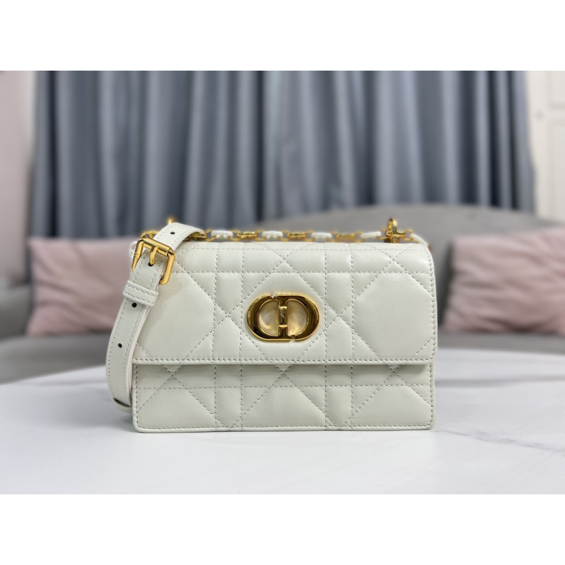 DetailMade of lambskin with unique quilted Macrocannage effect, gold-finish metal CD button closure on flap, adjustable chain shoulder strap between gold-finish metal links and tonal enamel links to match the leather alternates with leather inserts for added comfort when carried by hand or cross-body.