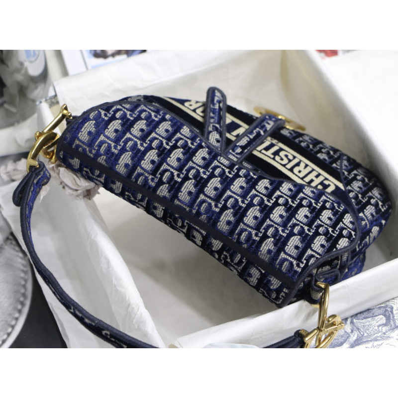Crafted in Dior Oblique jacquard fabric, it reveals a saddle flap with a magnetic D-shaped stirrup clasp and CD signature in antique gold-finish metal on either side of the shoulder strap. This saddle bag has an adjustable and detachable spaghetti strap and can be carried by hand, over the shoulder or across the body.