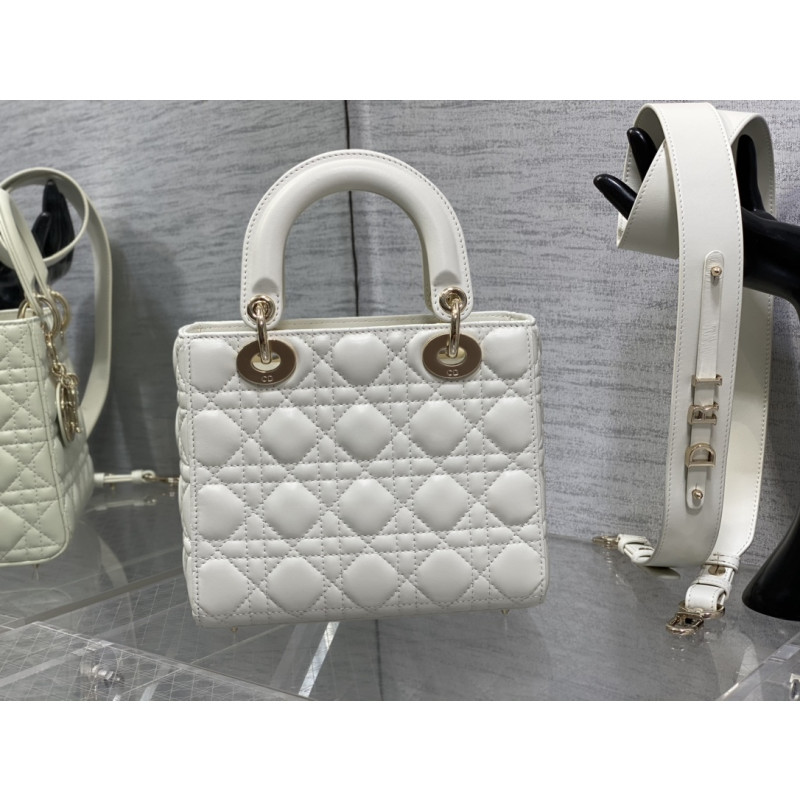 Crafted from lambskin, it features Cannage stitching for an instantly recognizable quilted texture. Can be carried by hand or crossbody, with internal zip pocket and adjustable shoulder strap, which can be matched with different embroidered shoulder straps, making it an ideal companion for evening wear.