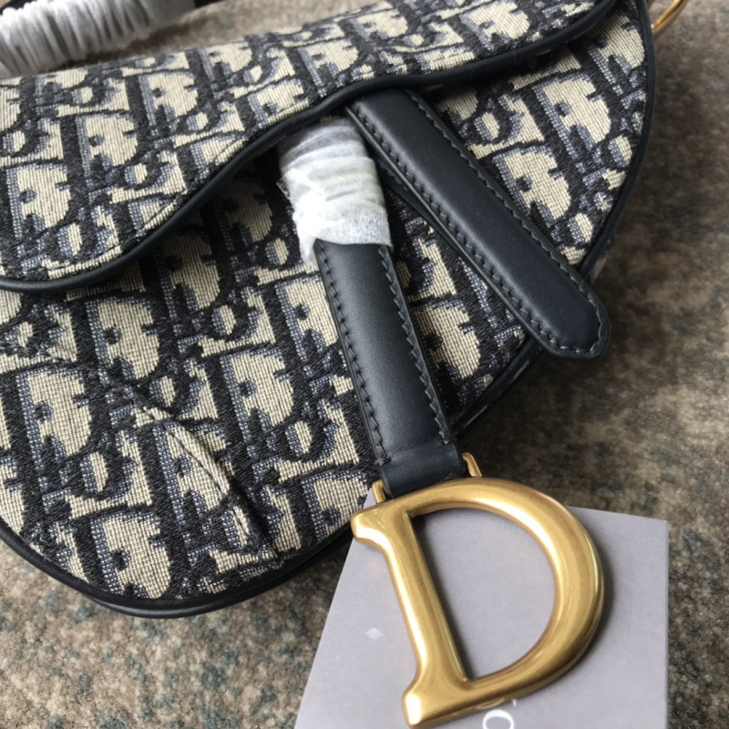 DetailCrafted in Dior Oblique jacquard fabric, it reveals a saddle flap with a magnetic D-shaped stirrup clasp and CD signature in antique gold-finish metal on either side of the shoulder strap. This saddle bag has an adjustable and detachable spaghetti strap and can be carried by hand, over the shoulder or across the body.