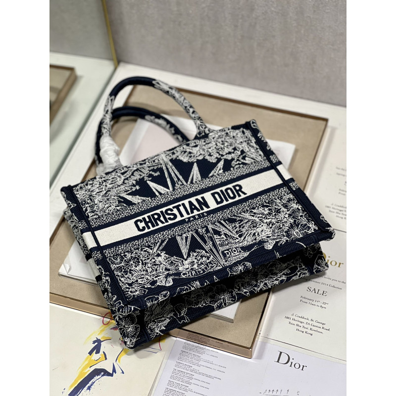 Designed to hold all your daily essentials, this style is fully embroidered with the Toile de Jouy motif and features the Christian Dior Paris signature on the front. The handbag embodies the brand's signature craftsmanship.
